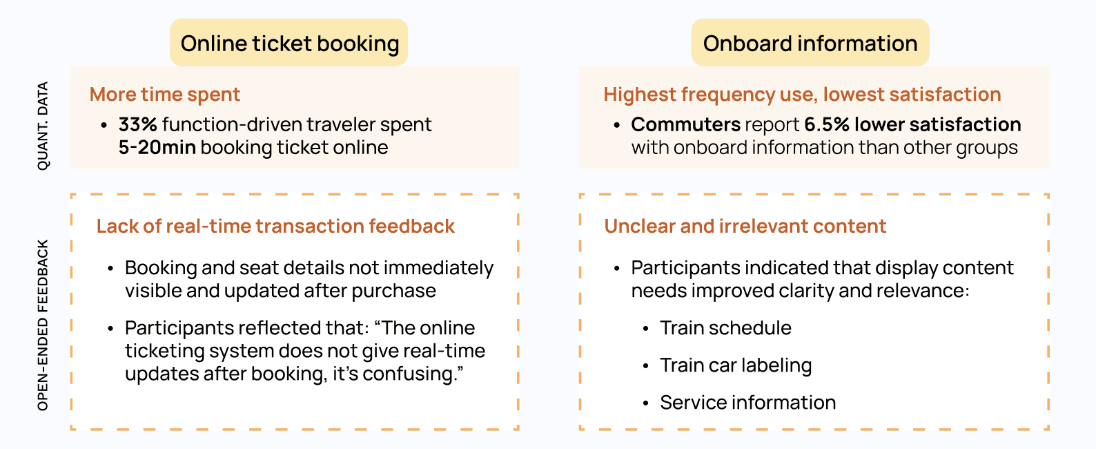 The study also identified three focus areas for qualitative follow-up: online ticketing system services, in-app ticket collection and onboarding experience, which informed subsequent focus group research.